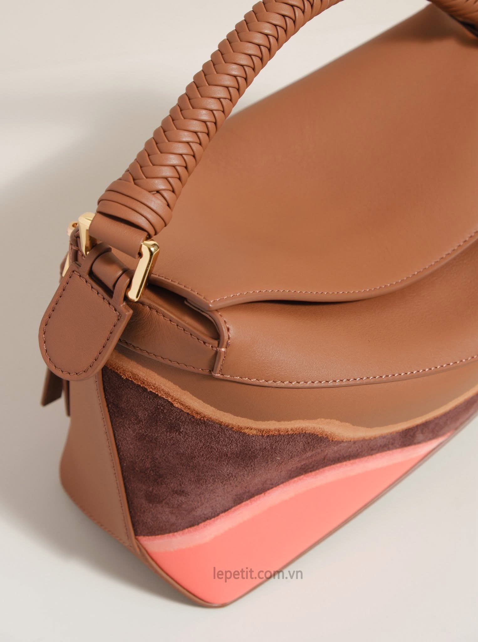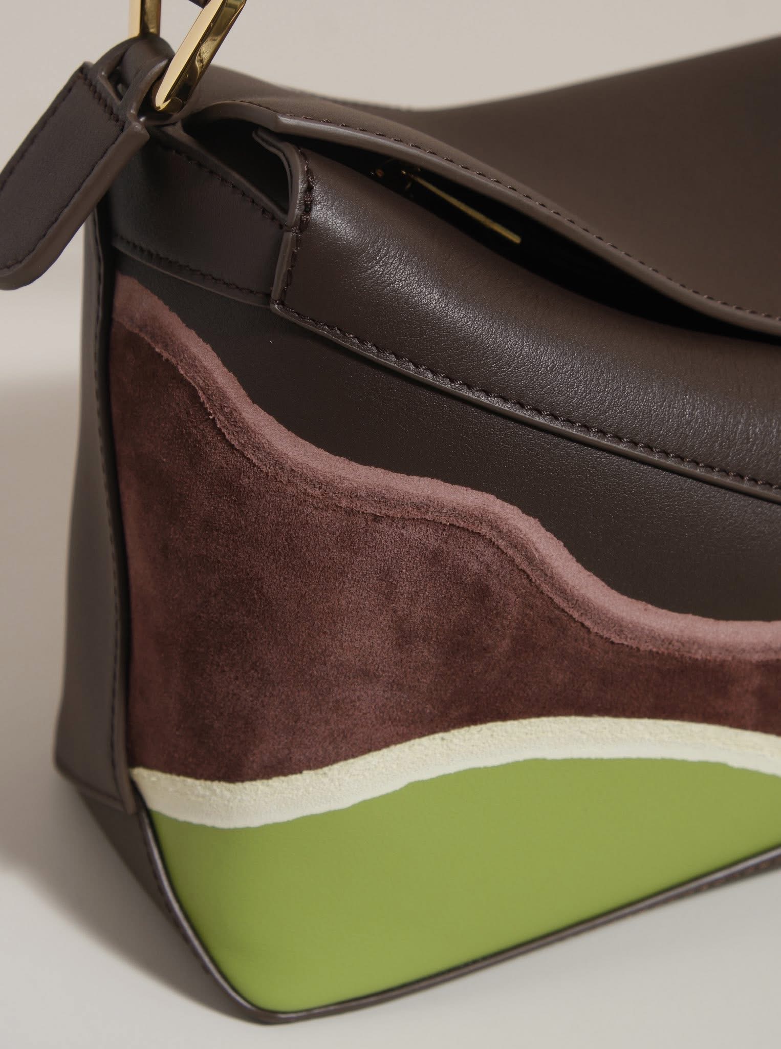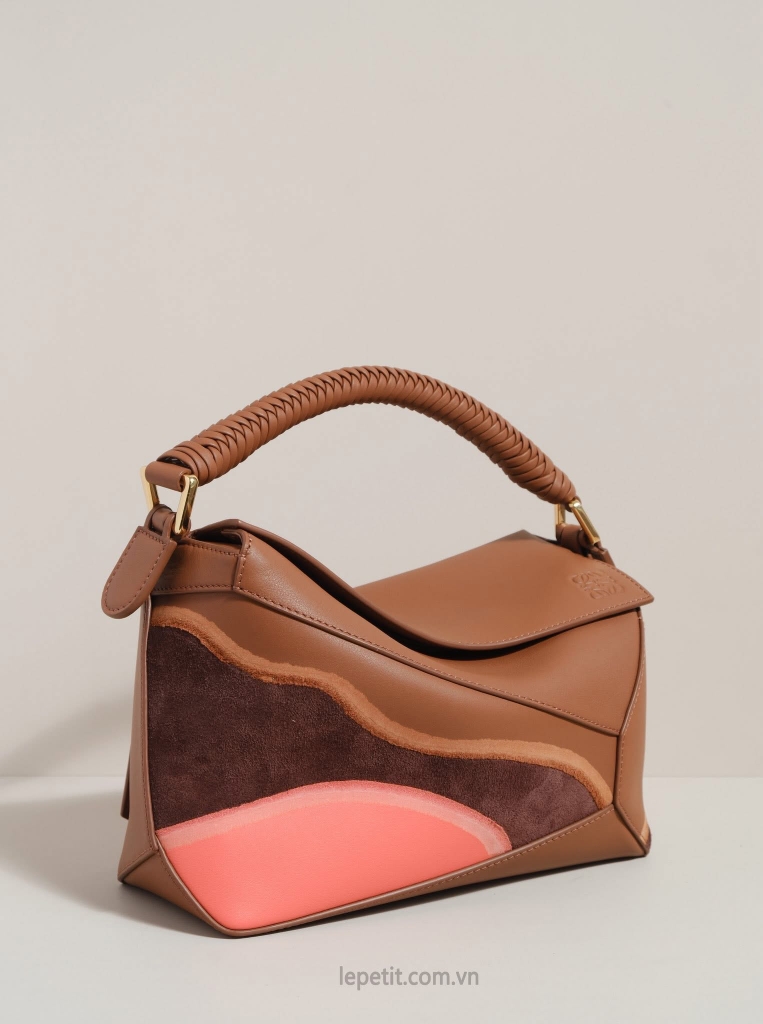 Các đường nét hình học của túi Puzzle đặt cạnh những đường cong đầy màu sắc cùng quai cầm đan tay thủ công, Puzzle Edge Landscape là sự hòa quyện tinh tế giữa sáng tạo và di sản - nơi kỹ thuật chế tác gặp gỡ cảm hứng nghệ thuật, tạo nên một tuyệt phẩm mang đậm tinh thần LW.