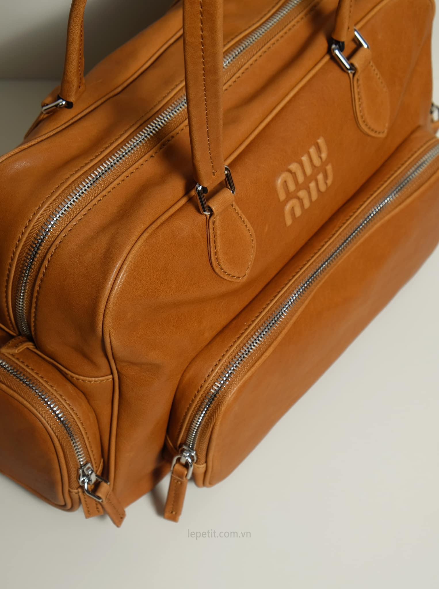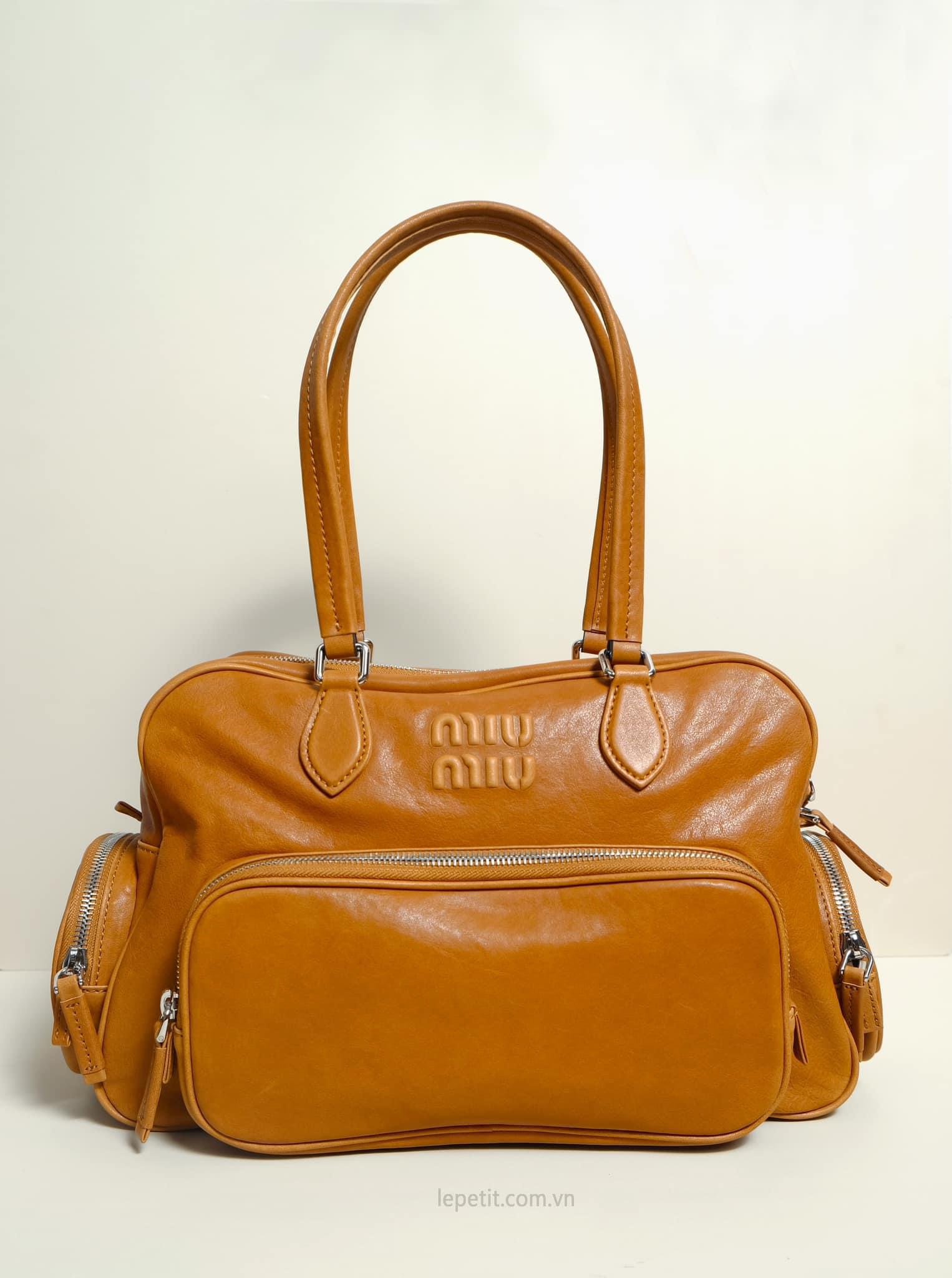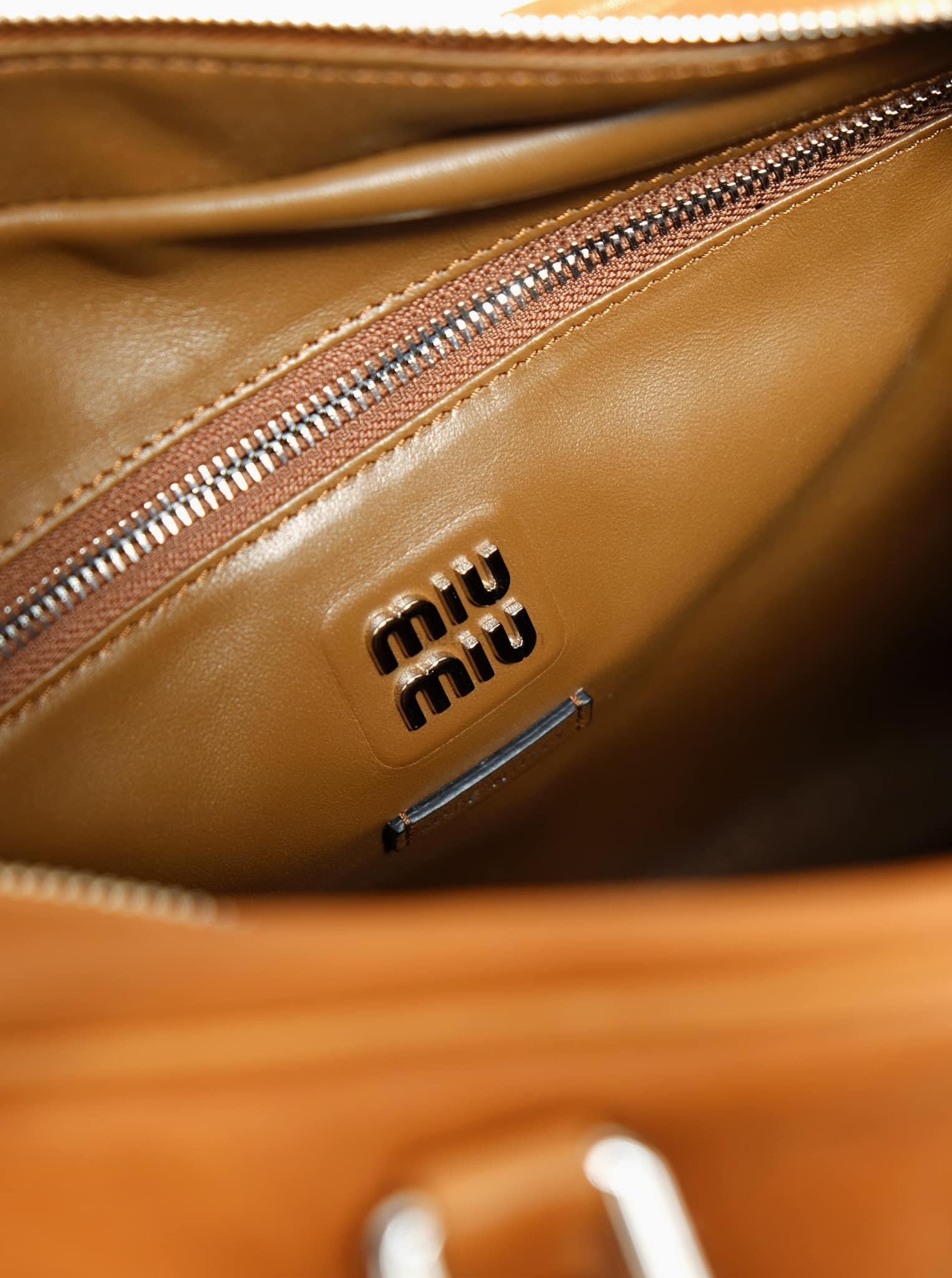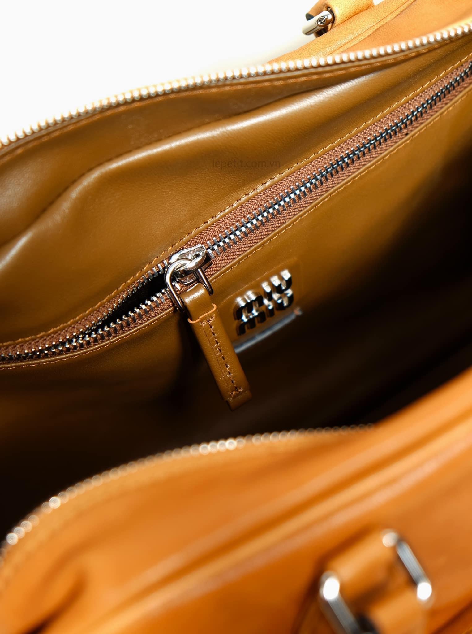 M/i/u M/i/u Nappa Leather Top Handle Bag - 1 phiên bản nâng cấp so với chiếc It Bag Pocket đình đám với kích thước lớn hơn, quai đeo vai thoải mái hơn thuận tiện mang hằng ngày đi làm, đi chơi… Chiếc túi không chỉ chinh phục phái nữ bởi kiểu dáng trẻ trung mà còn bởi chất liệu da nappa mềm mại. Thiết kế thanh lịch với logo MM dập nổi cùng gam màu caramel sang trọng, chiếc túi dễ dàng trở thành điểm nhấn hoàn hảo cho mọi bộ trang phục.