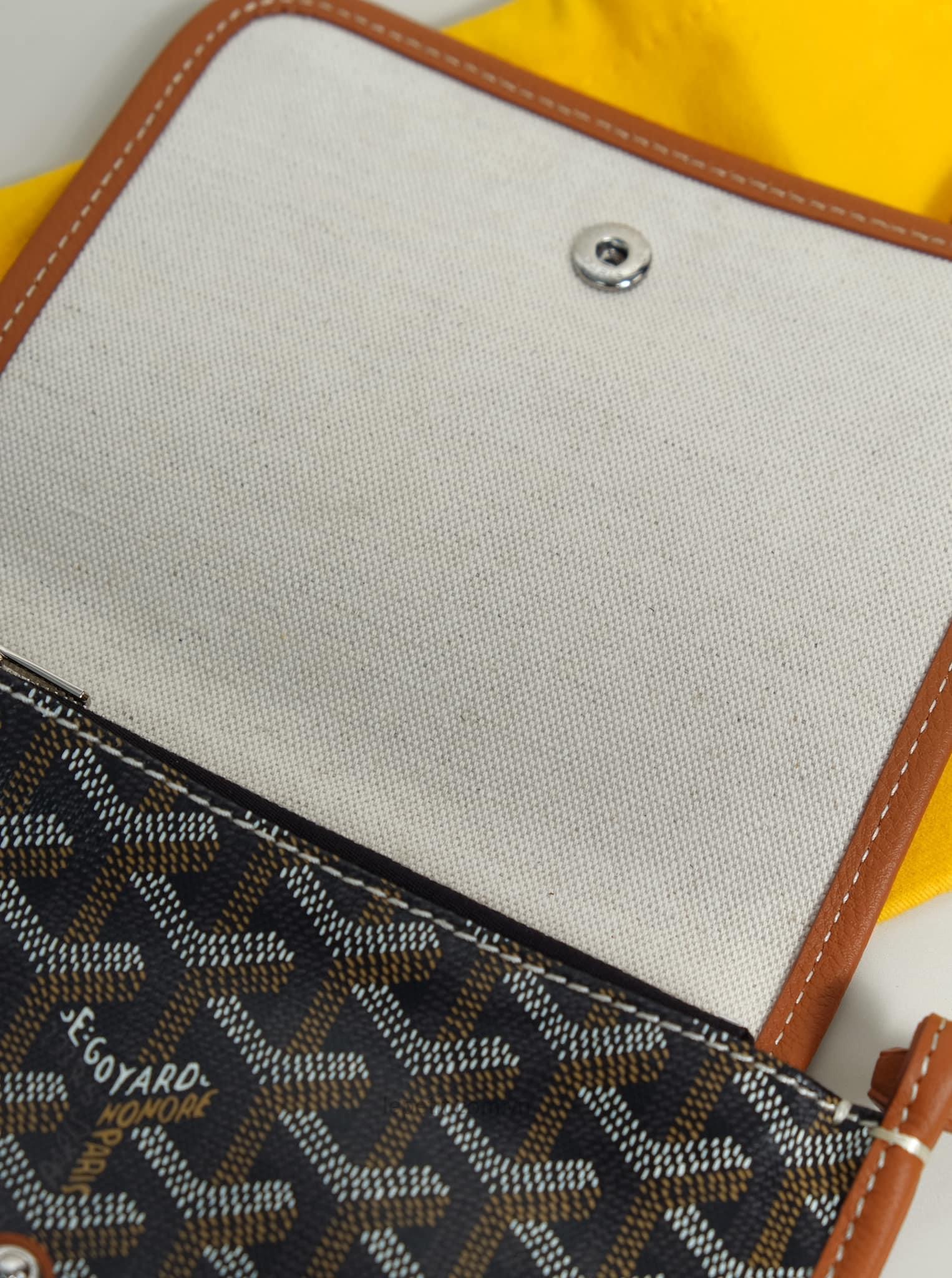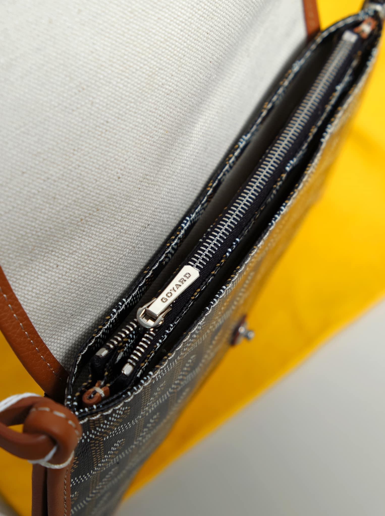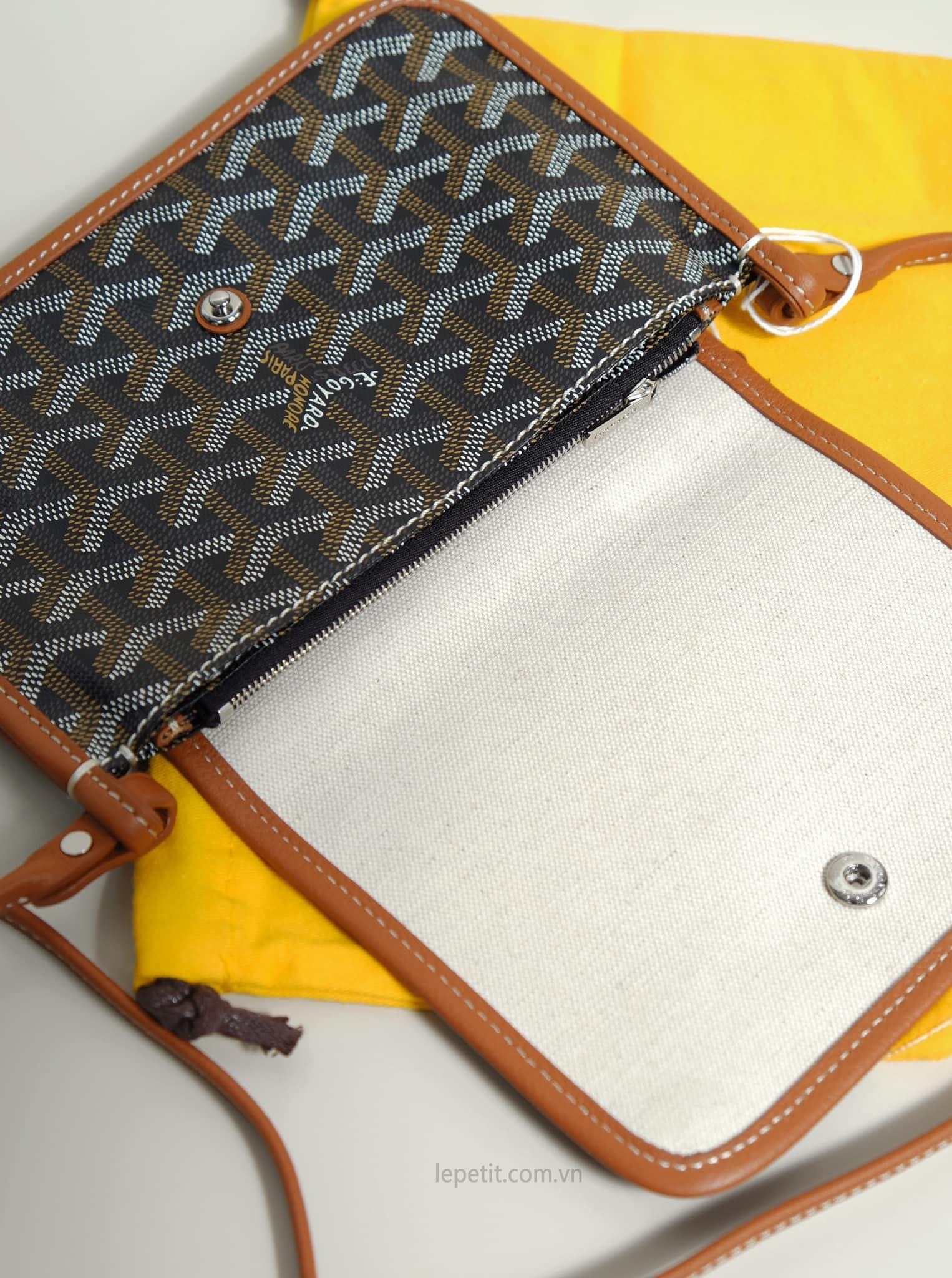 - Chất liệu: Goyardine canvas & da bê, lót vải