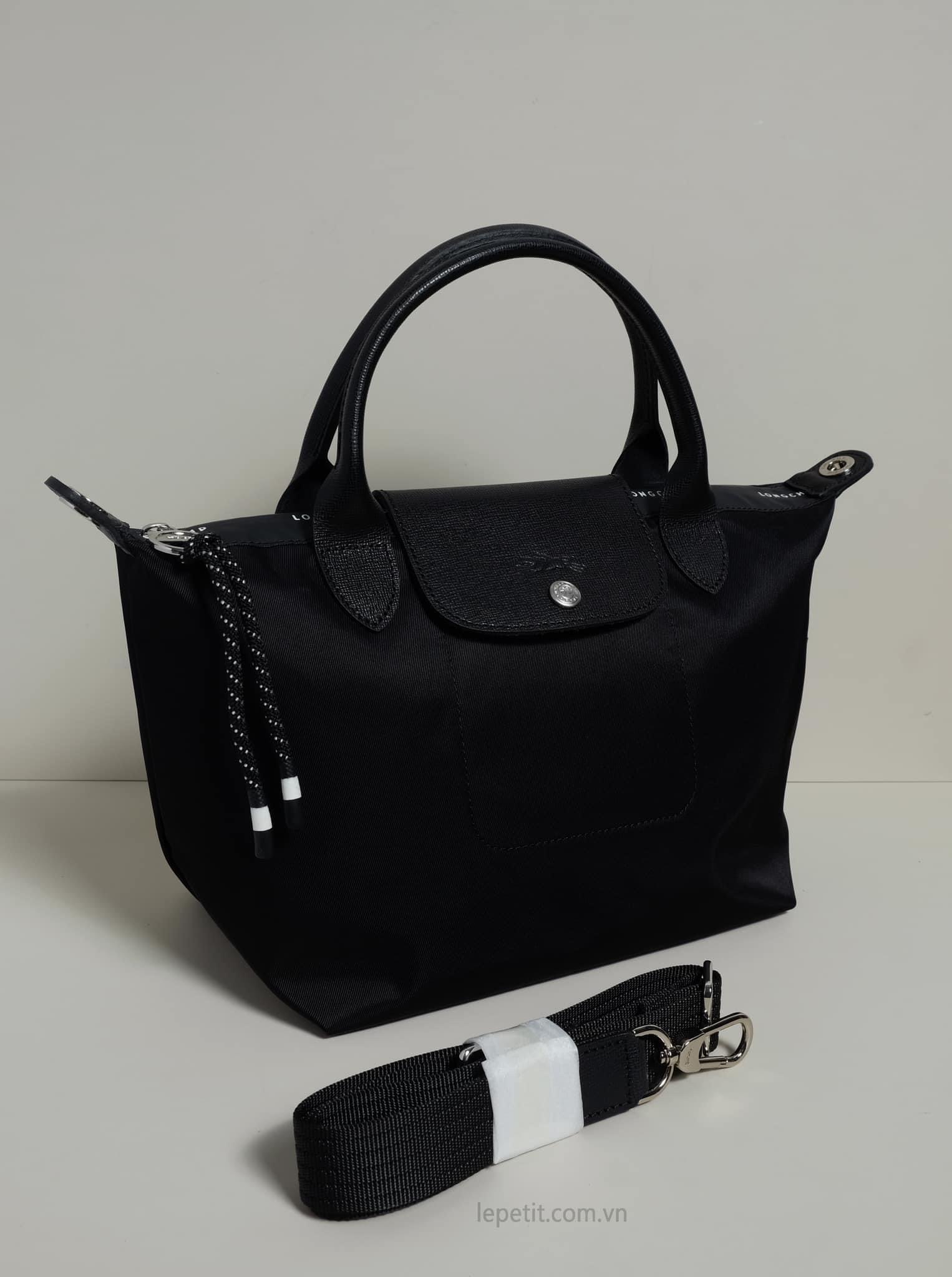 So với các mẫu Le Pliage Original thì dòng Energy có kích thước lớn hơn, đáy rộng hơn thoải mái để đồ, khoá kéo chống thấm nước bảo vệ tối đa cho đồ đạc bên trong, quai vải bản lớn đeo vai / đeo chéo chắc chắn và tiện dụng. Khoá kéo đính dây thắt nút màu sọc trắng đen nhấn mạnh phong cách thể thao năng động.