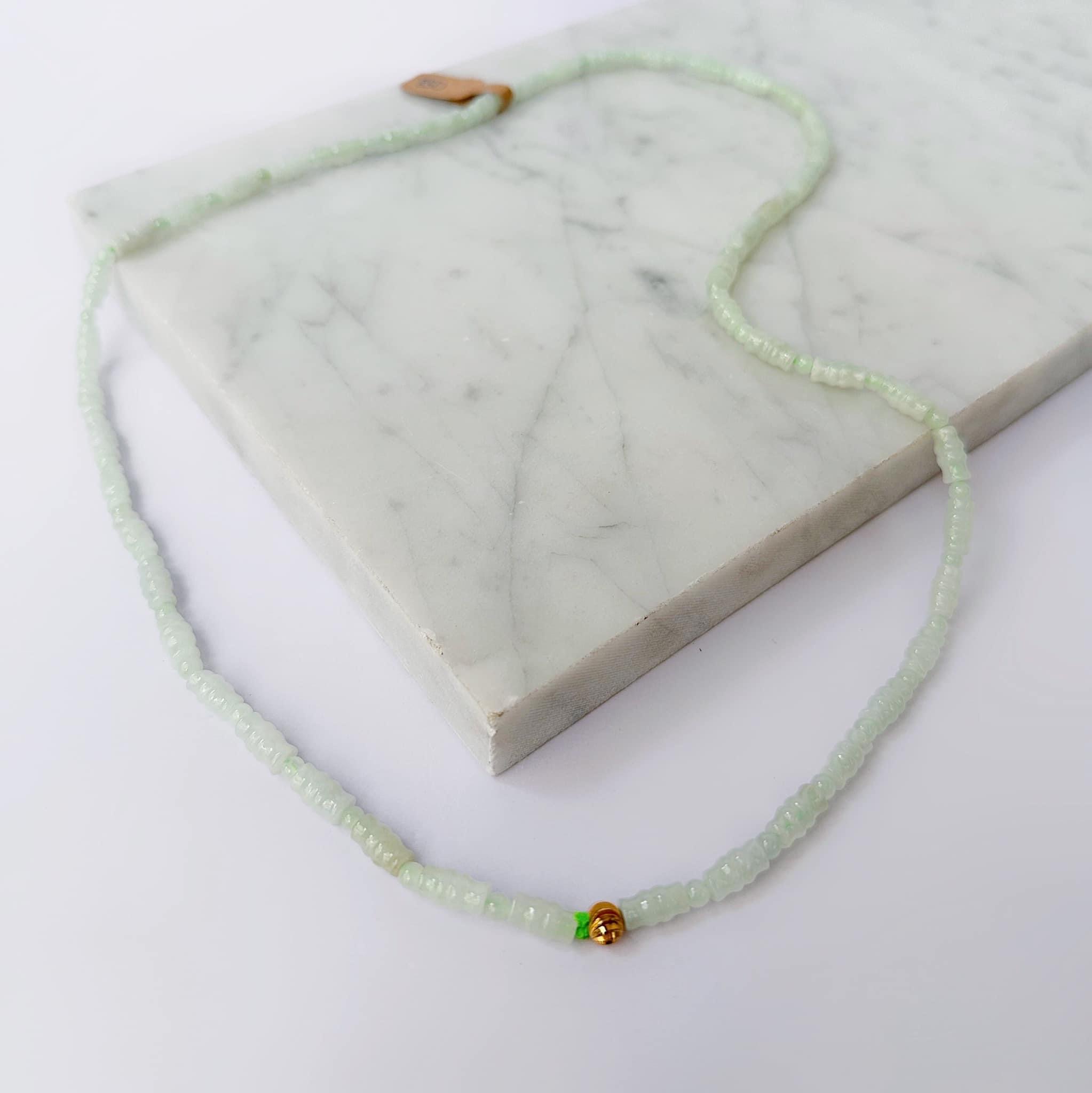 Vòng cổ cẩm thạch hạt đốt trúc phối hạt bi tròn nhí.