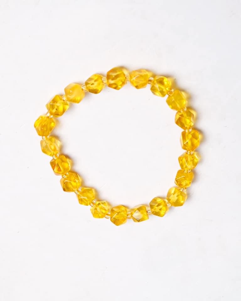 Vòng tay hổ phách kim hạt cắt giác lớn, sáng rực và lung linh như những tia nắng Mặt Trời.